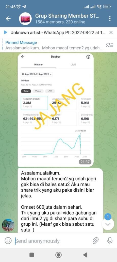 Semua materi di dalam Kelas Sharing TikTok Affiliate kami buat untuk sarana belajar kita bersama dan menyebarkan materi ini ke anggota lain merupakan salah satu bentuk pelanggaran terhadap hak cipta.